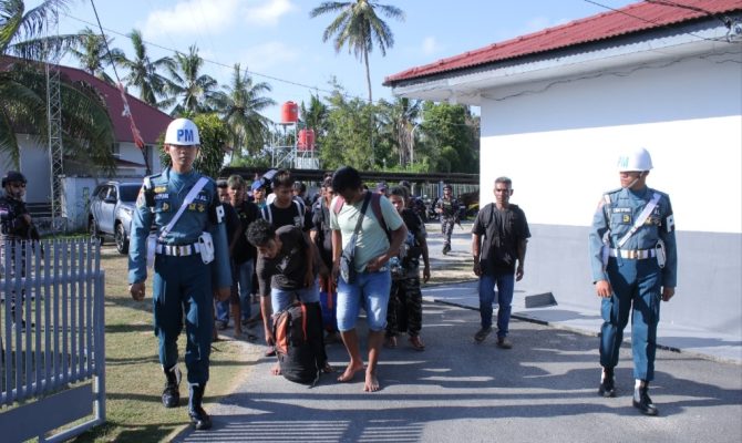 BINTAN, GURINDAM. TV — Sebanyak 28 Pekerja Migran Indonesia (PMI) ilegal berasal dari negeri jiran Malaysia di amankan Tim F1QR. mereka di gelandang ke Mako Lanal Bintan untuk proses lebih lanjut, sementara pelaku HSC dibawa ke Posbinpotmar Mentigi,” Ungkap Danlanal Bintan, Letkol Laut (P) Eko Agus Susanto, Selasa ( 26/3/2024).