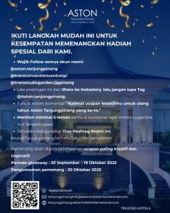 giveaway spesial. Para pemenang berkesempatan menikmati pengalaman lengkap, mulai dari menginap di ASTON Tanjungpinang, sarapan lezat, hingga menikmati fasilitas berenang dan bermain seru di wahana keluarga Trans Studio Garden.
