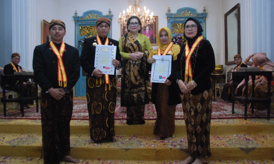 LINGGA, GURINDAM.TV — Bupati Lingga, Muhammad Nizar, S.Sos., beserta istri Maratusholiha, S.Kep., menerima gelar kehormatan kebangsawanan dari Keraton Kasunanan Surakarta Hadiningrat. Prosesi yang sakral itu berlangsung di Keraton Surakarta, Sabtu Pon, bulan Jumadil Akhir, dipimpin langsung oleh Gusti Kanjeng Ratu Pakoe Boewono.