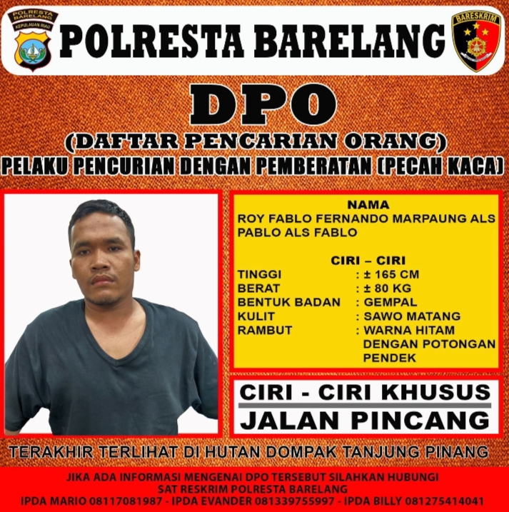 TANJUNGPINANG, GURINDAM.TV – Buron dalam kasus pencurian uang milik nasabah salah satu bank di Batam, Kepulauan Riau senilai Rp 800 juta Roy Fablo Marpaung akhirnya diringkus polisi.