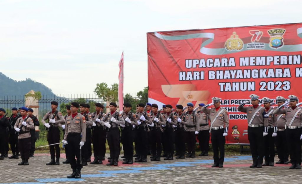 Kapolres Bintan AKBP Riky Iswoyo, S.I.K., M.M. selaku Inspektur Upacara dan dihadiri oleh Bupati Bintan Roby Kurniawan, S.P.W.K., seluruh FKPD Kabupaten Bintan Tokoh Masyarakat, Tokoh Agama dan sejumlah Organisasi yang ada di Kabupaten Bintan.