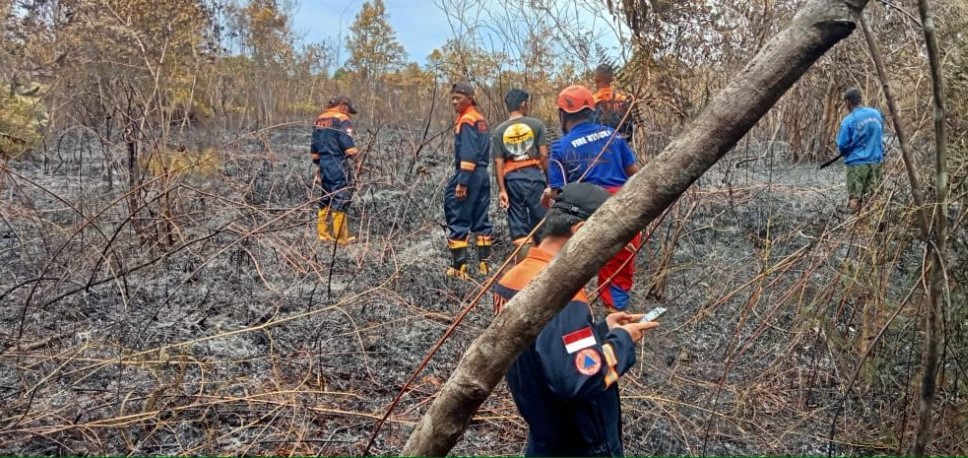 Petugas bekerja sama melakukan pemadaman dengan cara manual dan dibantu dari TRC BPBD, BHABINSA, serta masyarakat Desa Bukit Harapan.