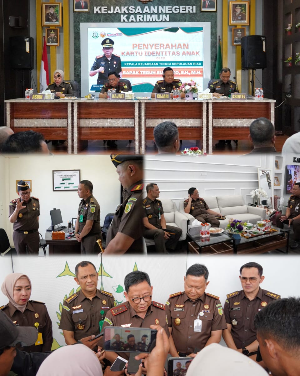 Kemudian Kajati Kepri juga melakukan peninjauan ke ruang kerja masing-masing bidang sembari berdialog dengan para pegawai mengenai hambatan yang dihadapi dalam pelaksanaan tugasnya. Kunjungan Kerja ini dilanjutkan dengan simbolis pemberian Kartu Identitas Anak (KIA) kepada beberapa perwakilan anak Sekolah Dasar (SD) yang hadir di Aula Kantor Kejaksaan Negeri Karimun. Acara dilanjutkan dengan melaksanakan briefing yang diawali paparan dari Kajari Karimun terhadap capaian kinerja dan serapan anggaran hingga triwulan II dan dilanjutkan pengarahan Kajati Kepri Teguh Subroto, SH., MH.
