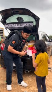 Bripka Zulham, demikian sapaan akrabnya melaksanakan program itu. Ia menyempatkan waktu di tengah kesibukannya memberi bantuan berupa sembako dan makanan siap saji.
