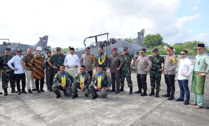 TANJUNGPINANG, GURINDAM.TV — Bandara RHF Tanjungpinang menjadi saksi dari penggelaran megah Penerimaan Operasi Alur Ambara-24, Latihan Maverick Combine Terbang Jelajah, Profensiensi, Refresing Dan Transisi Pesawat Tempur Hawk 100/200 serta Pengukuhan Warga Kehormatan Pangkalan TNI AU Raja Haji Fisabilillah. Sabtu (17/2/2024).