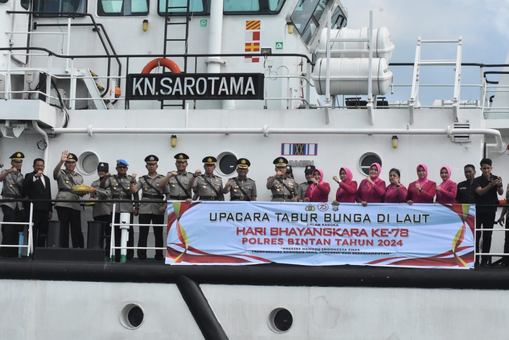 “Memperingati Hari Bhayangkara ke-78 tahun 2024, salah satu kegiatan yang dilaksanakan yaitu melakukan Upacara Pelarungan Bunga dan Tabur Bunga di Laut”, kata Kapolres Bintan.