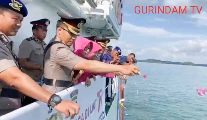 BINTAN, GURINDAM.TV -– Memperingati Hari Bhayangkara ke-77 Tahun 2023, Polres Bintan melaksanakan upacara Tabur Bunga yang dilaksanakan di Pelabuhan KPLP Tanjung Uban pada Selasa (27/6/2023)