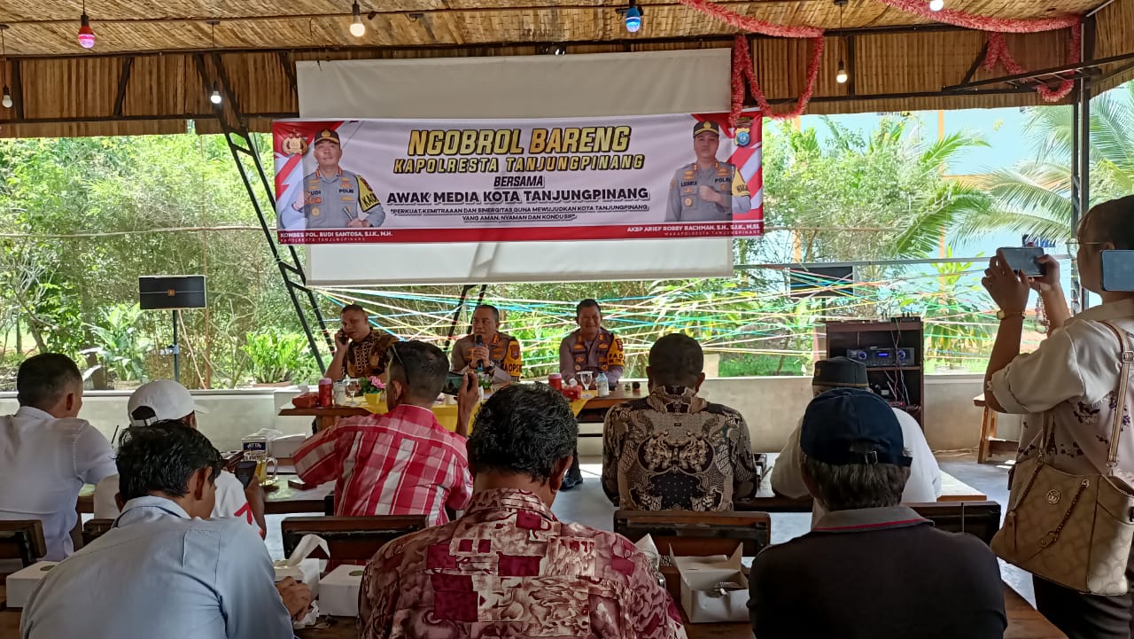 TANJUNGPINANG, GURINDAM.TV — – Sejumlah wartawan menyampaikan masukan dan sejumlah masalah di acara Ngobrol Bareng bersama Kapolresta Tanjungpinang, Kombes Pol Budi Santosa, Jumat (11/10/2024).