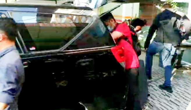 Dengan menggunakan 4 mobil, petugas KPK melakukan penggeledahan di kantor tersebut yang berlangsung hingga pukul 16.45 WIB.