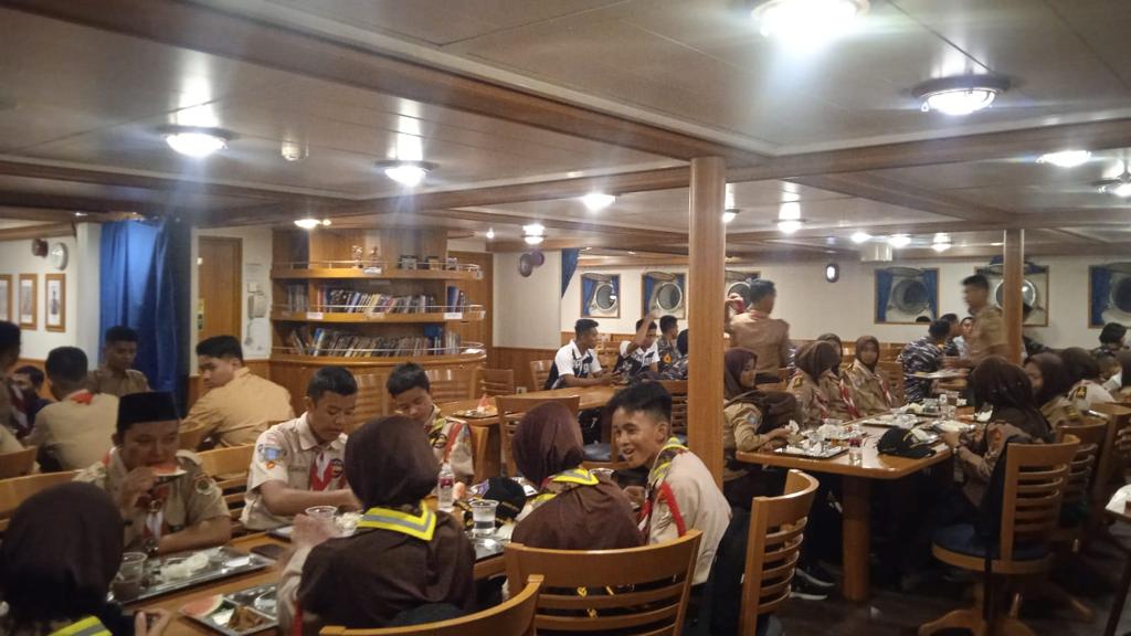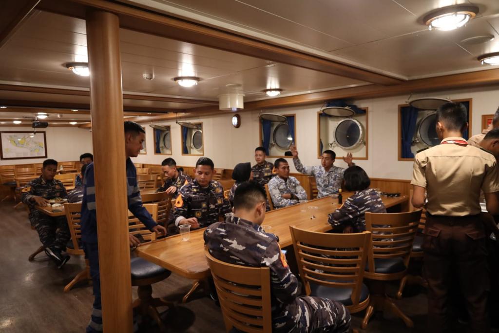 Selain pembelajaran para siswa-siswa ini berkesempatan berbuka puasa dan beribadah bersama para Taruna di atas KRI Bima Suci serta merasakan kehidupan sebagai ABK selama mereka bermalam di KRI Bima Suci.( Pen/Pit )