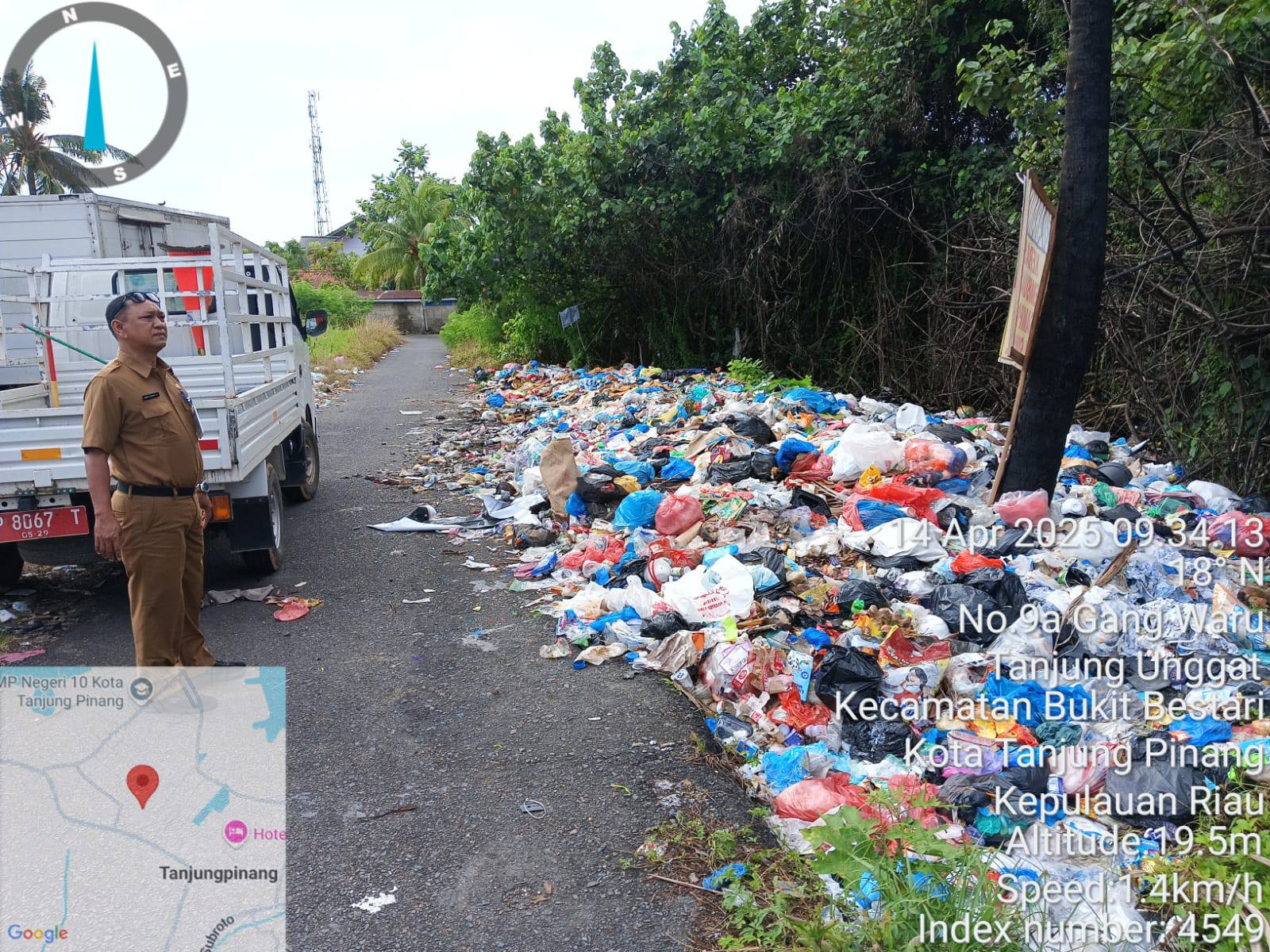 Dalam postingan itu, Tampak seorang tampak salah seorang ASN Pemko Tanjungpinang meninjau lokasi dan menujuk pelarangan pembuangan sampah yang telah tertulis spanduk kecil.