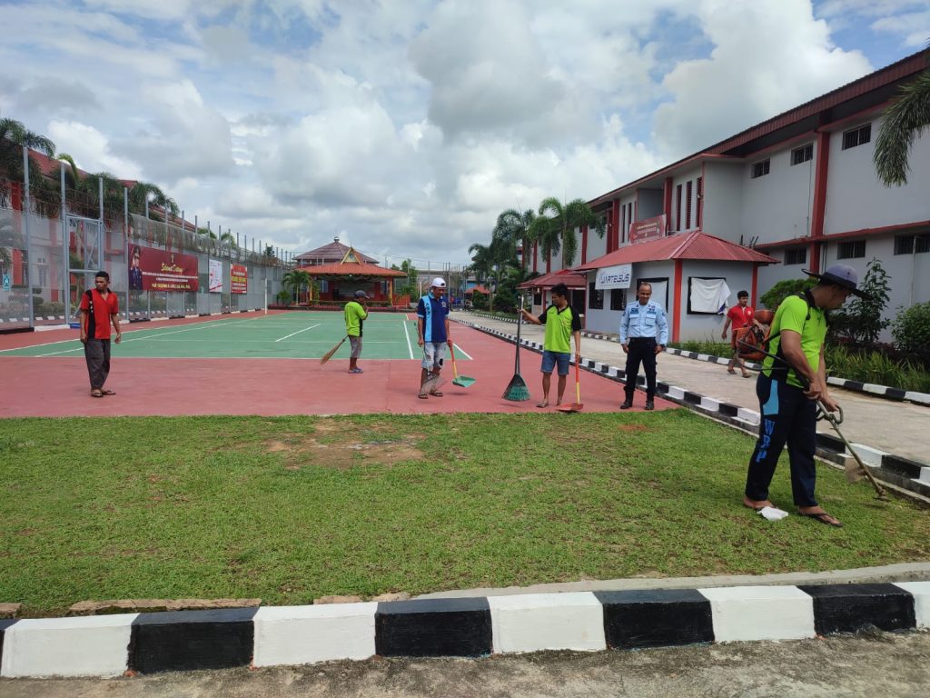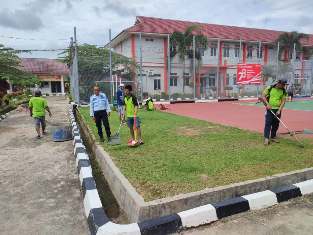 Kegiatan bersih-bersih area Lapas ini dilaksanakan Pemotongan Rumput Halaman, pembersihan area Lapangan, Pembersihan Area Blok Hunian , Pengecekan Tralis, dan kebersihan saluran air di Lapas Narkotika kelas II.