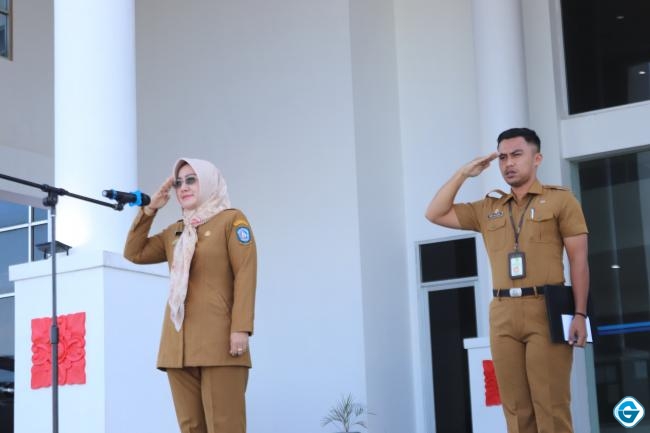 NATUNA, GURINDAM.TV — Pjs Bupati Natuna Rika Azmi memimpin apel pagi perdana setelah ditunjuk mengisi kekosongan jabatan Bupati Natuna, di halaman kantor Bupati Natuna Bukti Arai, Senin (30/9/2024).