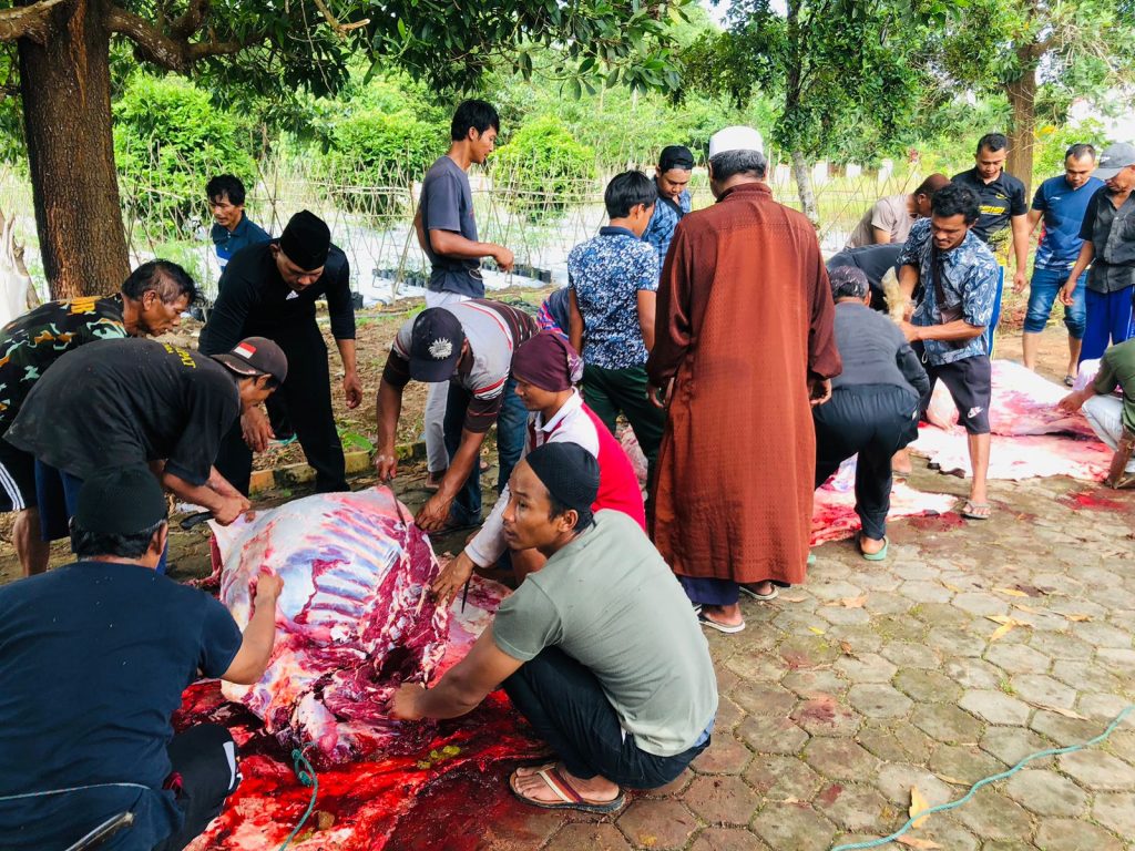 BINTAN, GURINDAM.TV -– Dalam rangka memperingati Hari Bhayangkara Ke-77 Tahun 2023, Pada momentum Idul Adha 1444 H Kepolisian Resor Bintan melakukan pemotongan 3 Ekor Sapi yang dilaksanakan di halaman Mesjid Darul Muttaqin Mapolres Bintan, pada Kamis (29/06/2023).