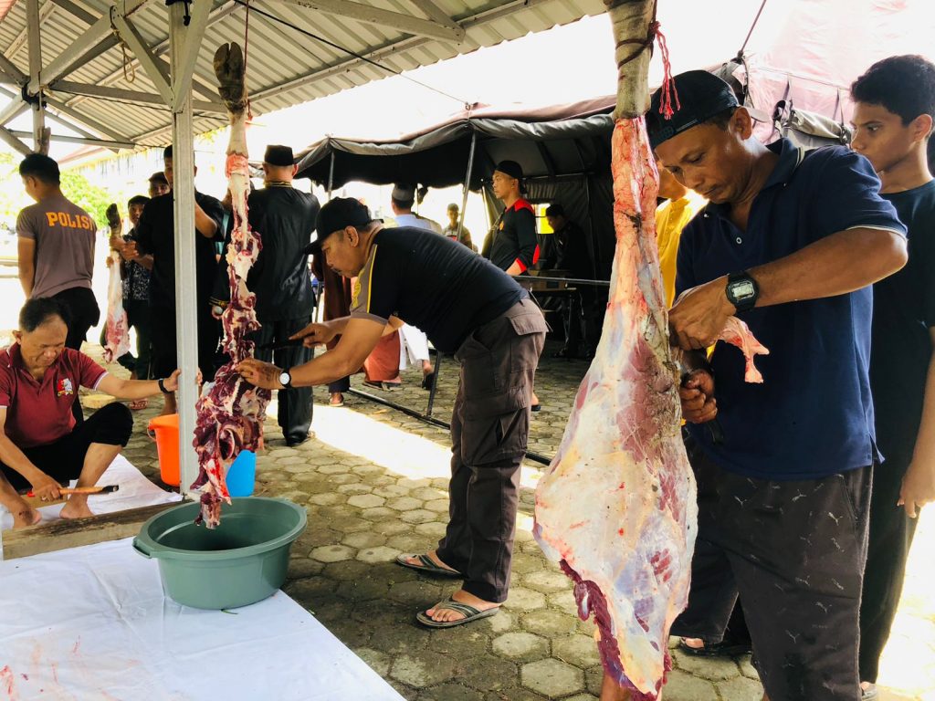 Kapolres Bintan AKBP Riky Iswoyo, S.I.K, M.M mengatakan penyembelihan hewan qurban tersebut dilakukan oleh panitia yang terdiri dari personil Polres Bintan.