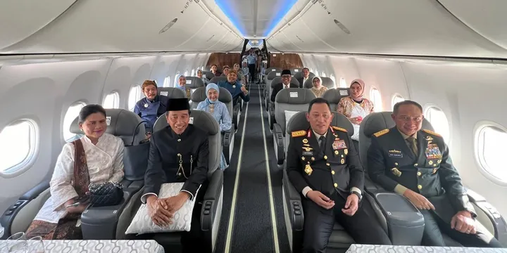 JAKARTA, GURINDAM.TV — Presiden ke-7 RI Joko Widodo dan Iriana Jokowi kembali ke Solo menaiki pesawat TNI AU jenis Boeing B737 A7309 dari Lanud TNI AU Halim Perdanakusuma, Jakarta. Nampak sejumlah tokoh mendampingi Jokowi.