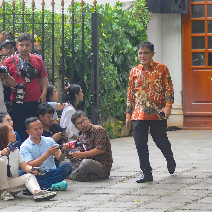 Mantan Aktivis 98, Budiman Sudjatmiko saat memenuhi panggilan Prabowo sebagai calon wakil menteri (wamen) di kediamannya di Jalan Kertanegara Nomor 4, Jakarta Selatan, Wakil Menteri Komunikasi dan Informatika Nezar Patria ,Wakil Ketua Umum Partai Gelora Fahri Hamzah ,Anggota Dewan Pembina Partai Solidaritas Indonesia (PSI) Giring Ganesha, Politikus PSI Isyana Bagoes Oka serta Legenda bulu tangkis Indonesia, Taufik Hidayat turut memenuhi panggilan Prabowo sebagai calon wakil menteri (wamen).