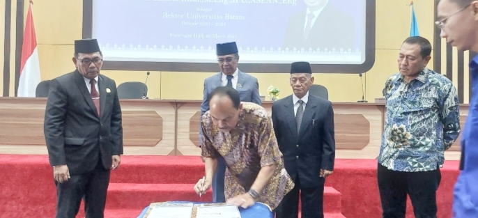 BATAM, GURINDAM.TV — Prof.Dr.Ir.Samsul Rizal.,M.Eng.,IPU.,ASEAN.,Eng terpilih sebagai Rektor Universitas Batam dengan masa periode 2024-2028,sertijab Rektor Uniba ini dilaksanakan di gedung Rumengan Hall Batam Center pada(Selasa,26/03/2024).