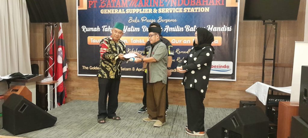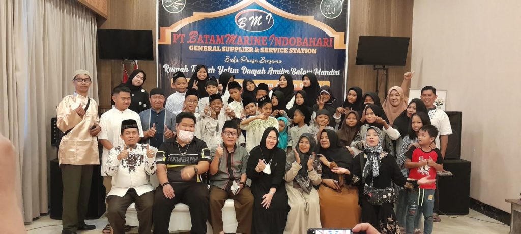 BATAM, GURINDAM-TV — PT. Batam Marine Indobahari dan Asosiasi Alat Keselamatan Pelayaran Indonesia (Aspesindo) menggelar acara buka bersama puluhan tahfizh yatim duafa Amilin Batam Mandiri serta memberikan santunan pada Sabtu ( 8/4/2023) di Hotel Golden Bay Bengkong Batam Sebelum waktu buka bersama tiba, acara diawali dengan tausiah, pembacaan surat Yasin, tahlil serta Doa yang dipimpin ustad Junaidi akbar.