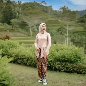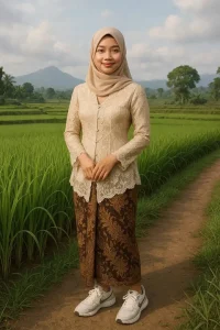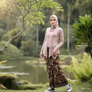 Kebaya ini biasanya dipadukan dengan kain batik bermotif Geulis atau Mega Mendung yang berasal dari Cirebon, menjadikannya pilihan yang tepat bagi perempuan muda yang ingin tampil sopan dan tradisional, tetapi tetap praktis. Warna-warna lembut seperti krem, merah marun, dan biru laut sering menjadi pilihan utama untuk kebaya Sunda, terutama saat perayaan Hari Kartini yang menekankan nilai kesederhanaan dan keanggunan.