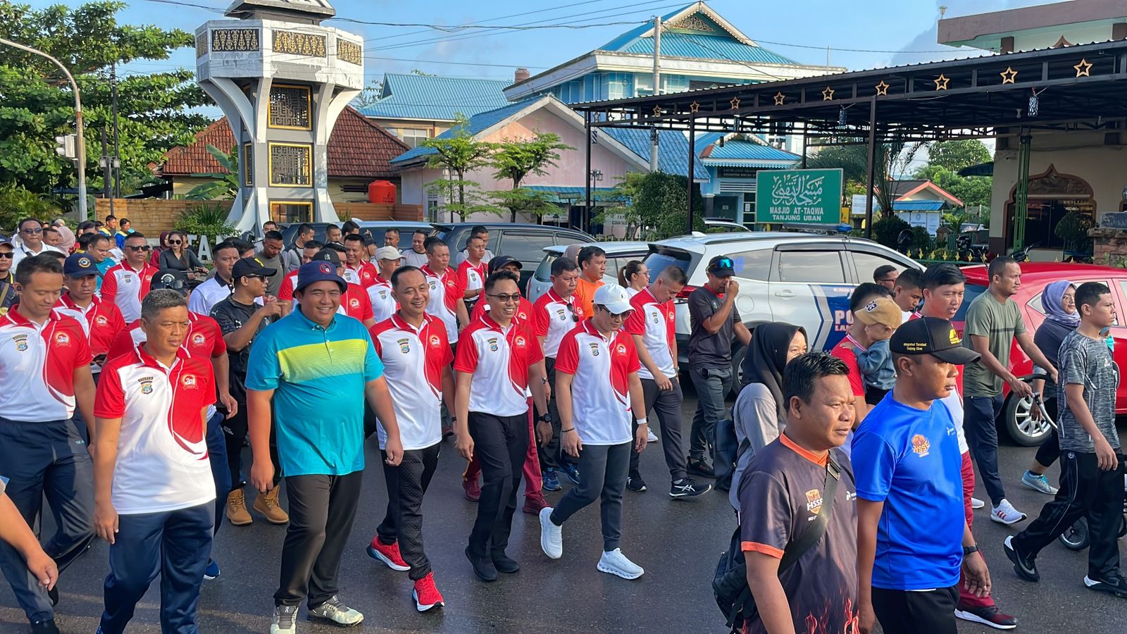 Terlihat masyarakat antusias sekali yang mengikuti jalan santai tersebut, ribuan masyarakat mengikuti jalan santai bersama Bupati Bintan, Wakil Bupati Bintan, Sekda Kab. Bintan, Kapolres Bintan, Dandim 0315/Tanjungpinang, Dansatkat, Danlanal Bintan, Dansatrad/213 Tanjungpinang, Kafasarkan Mentigi, perwakilan Danlanud RHF Tanjungpinang, perwakilan Kajari Bintan, Ka Lapas Kelas II A Tanjungpinang, Ka OPD Kab. Bintan, Sekretaris DPRD Kab. Bintan, Kasat Pol PP Kab. Bintan, Camat Bintan Utara, Camat Seri Kuala lobam, Camat Teluk Sebong, Lurah Se-Kec. Bintan Utara, Seri Kuala Lobam dan Teluk Sebong, Kades Se-Kec. Bintan Utara, Seri Kuala Lobam dan Teluk Sebong, KUA Bintan Utara, Ketua Bawaslu Bintan, Komisioner KPU Bintan, Ka UPTD Damkar Tanjung Uban, Kepala Puskesmas Kec. Bintan Utara, Ketua LAM Tanjung Uban, Ketua MUI Tanjung Uban dan Ketua KNPI Bintan.