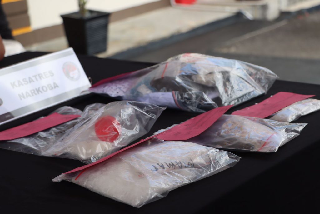 Saat dilakukan penggeledahan pelaku AA ditemukan 1 Bungkus Paket plastik bening sedang berisikan narkotika jenis Sabu, 3 Buah botol kecil warna hitam berisikan narkotika jenis sabu, sehingga sabu yang di dapat dari AA dengan berat Kotor 229,11 Gram.