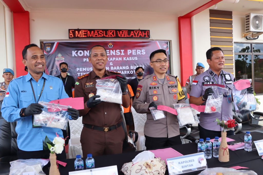 BINTAN, GURINDAM.TV -– Satresnarkoba Polres Bintan berhasil membekuk tiga orang sebagai pemilik narkotika jenis sabu-sabu diwilayah Bintan, dari ketiga pelaku ditemukan barng bukti lebih dari 1 Kilo Gram.