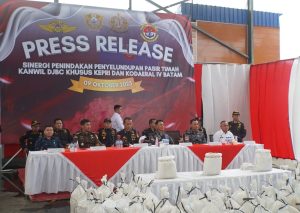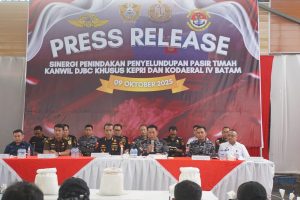 BATAM, GURINDAM.TV — Komando Daerah Angkatan Laut (Kodaeral) IV Batam dan Kantor Wilayah Direktorat Jenderal Bea dan Cukai (DJBC) Khusus Kepulauan Riau berhasil menyita 25,9 ton pasir timah ilegal di Perairan Pulau Pengibu.